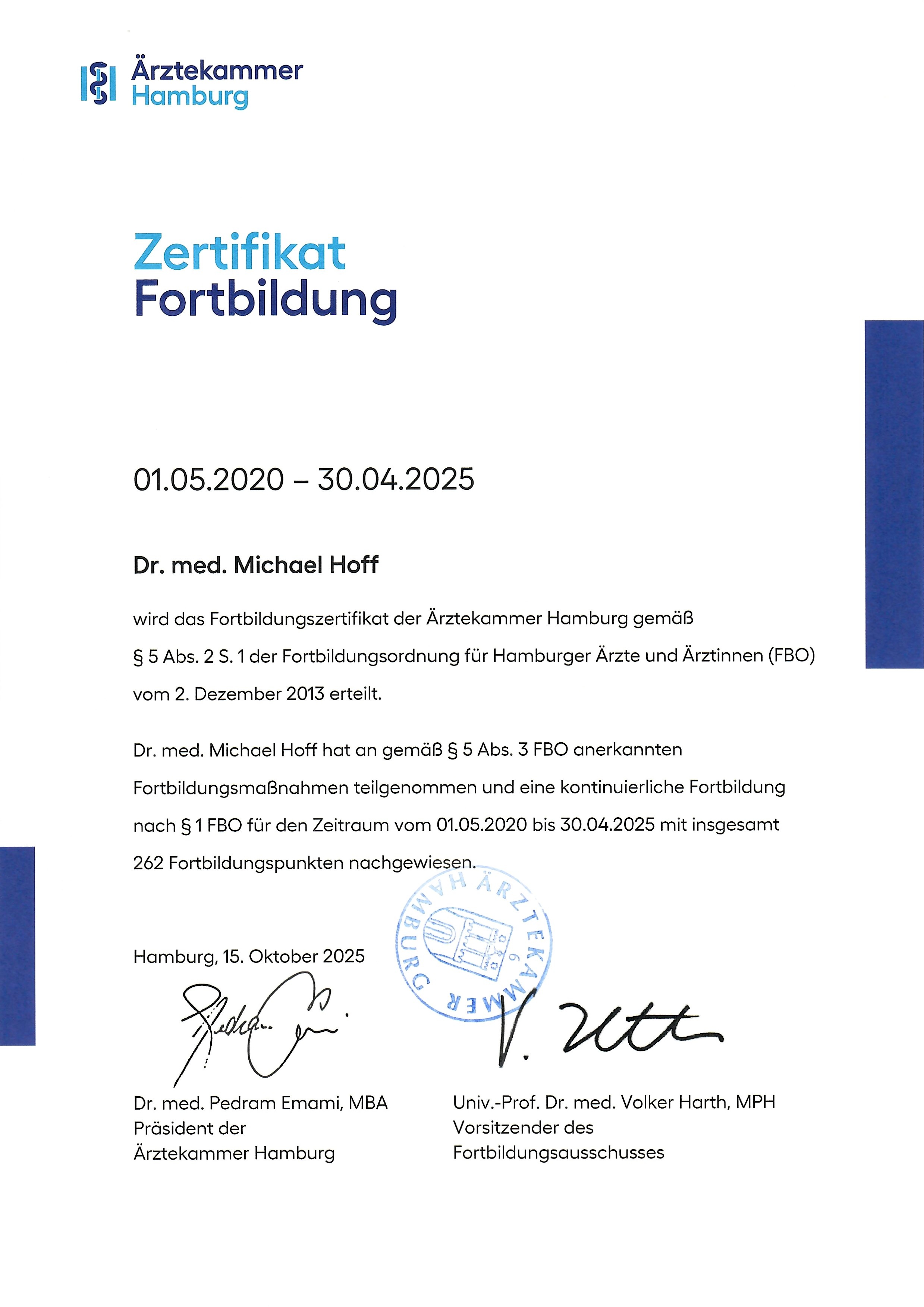 - alle 5 Jahre ausgestellt von der Fortbildungsakademie der Ärztekammer Hamburg